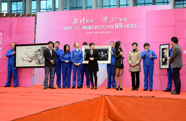 3月7日下午,細(xì)雨中伴著寒風(fēng),而漣鋼體育館里卻暖意融融。華菱漣鋼女職工“真情幫扶、愛心奉獻(xiàn)”手工作品展愛心義賣活動在這里展出,會上共展出了由漣鋼女職工親手制作的刺繡、書畫等152件精美的手工藝品。