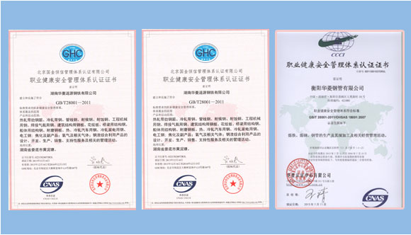 華菱湘鋼、華菱漣鋼、華菱衡鋼職業(yè)健康安全管理認證證書